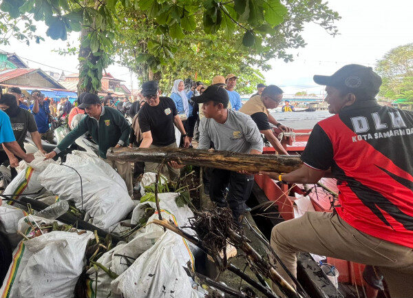 Foto : Andi Harun bersama Endang Liansyah dan petugas bergotong royong mengangkat sampah. Kabarnews.co, Samarinda – Sungai Karang Mumus (SKM) kembali dibersihkan pagi ini, Sabtu