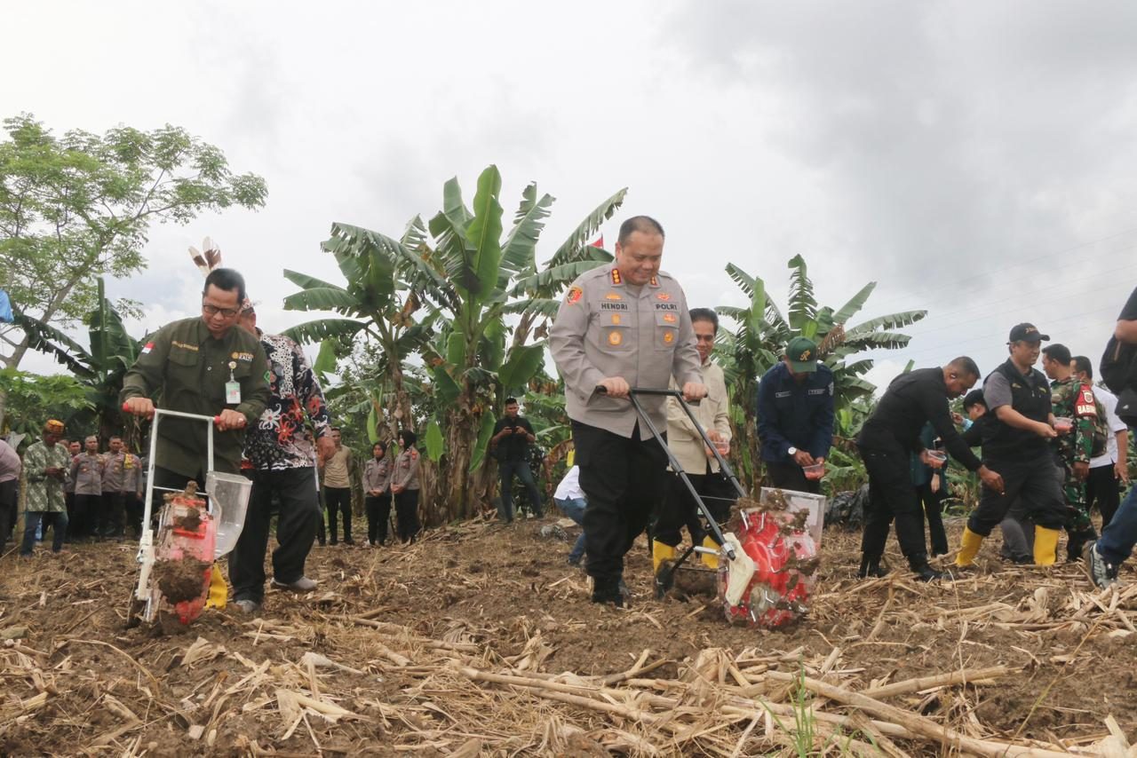 Kapolri menyampaikan bahwa jajaran kepolisian di seluruh Indonesia melakukan penanaman jagung serentak di lahan seluas 3.035,89 hektare yang dikelola oleh berbagai Polda pada kuartal I tahun 2026. Program tersebut juga menjadi bagian dari upaya mendukung Asta Cita Presiden Prabowo Subianto dalam mewujudkan target swasembada jagung nasional pada tahun 2026.